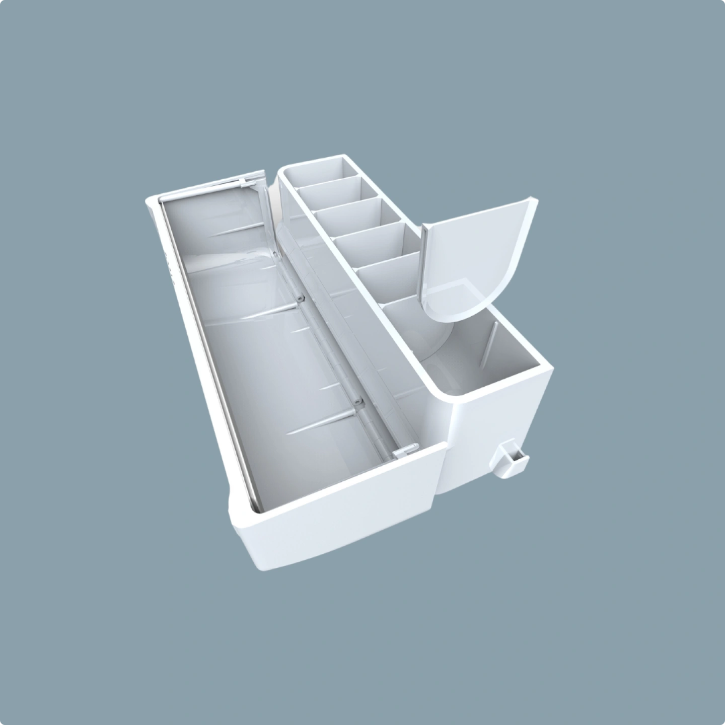 Your Alcove will come with a sheet of preprinted and blank labels for easy identification. Simply open Alcove and affix the labels to the inside tray.